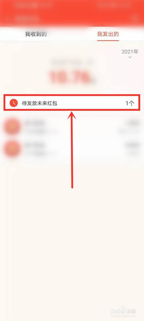 在发出的红包记实中找到【待发将来红包】,点击进入详情页。