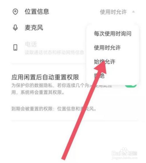 将利用权限由“利用时许可”改为“始终许可”。
