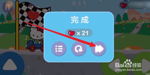 如图所示当作功达到终点完当作关卡,点击【快进图标】继续闯关。