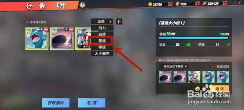 点击品质小框,找到星级并点击一下。