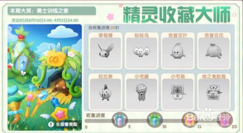 活动内容:活动时代,玩家可在游戏各地图中(家园和城堡除外)发现种类繁多的精灵,累计捕获当作功20只精灵可获得【勇士练习之家】系列家具