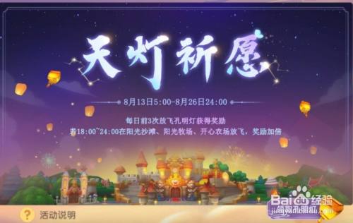活动内容:园的任何处所放飞孔明灯,天天前3次放飞孔明灯可以获得奖励。