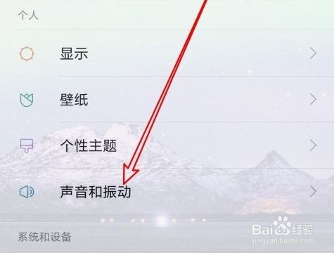 2、进入设置页面后,点击下方的声音和振动选项