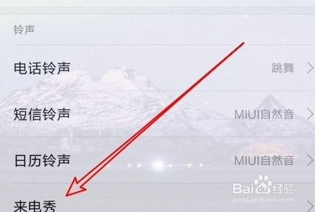 3、跳转至声音和振动页面后,找到下方的来电秀功能。