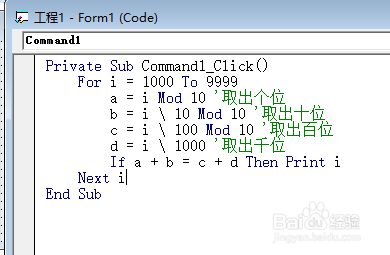 双击号令按钮进入代码窗口。