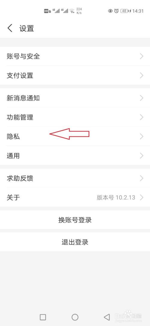 2.在显示的页面上,选择【隐私】菜单。