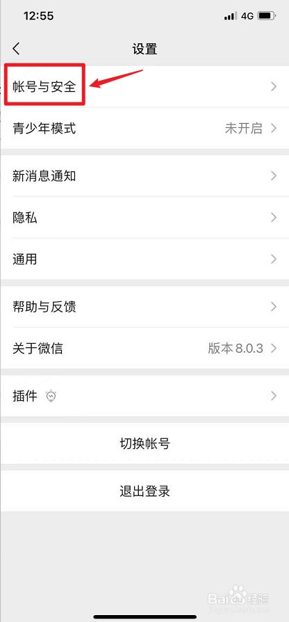 点击上面的【帐号与平安】。