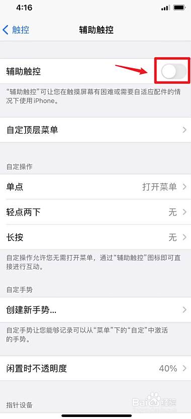 把【辅助触控】后面的滑动条标的目的右滑动。