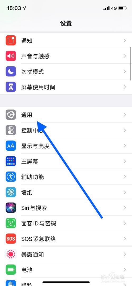 下滑页面点击“通用”进入界面。