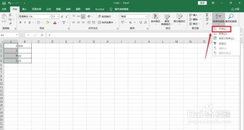 点击右上角的【排序和筛选】。