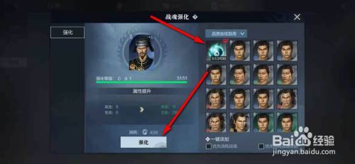 工具/原料荣耀9xEMUI10.1.0.133真三国无双霸1.3.0方式/步骤1进入真三国无双霸手游,点击右下角的弹出菜单图标。2点击“行囊”。3点选“战魂”。4点击需要强化的战魂。5点击“强化”。6点选战魂经验,点击“强化”,强化当作功即可晋升战魂属性。END