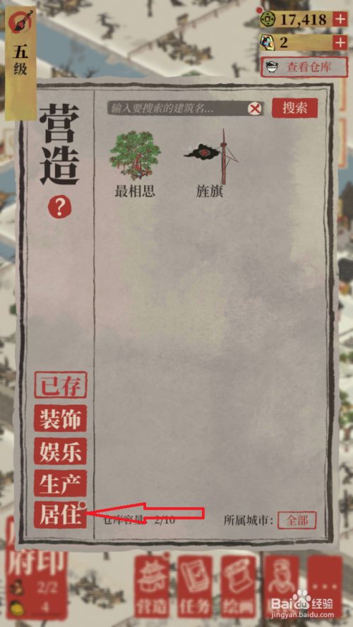 工具/原料iPhone12iOS14.7.1江南百景图1.5.1方式/步骤1在江南百景图游戏中点击【营造】2点击窗口中的【栖身】3找到并点击【水井】4选择一位负责人5将水井放在灶神雕像四周的空位处,点击红色的小钩6水井放好后耐烦期待施工完当作即可。END
