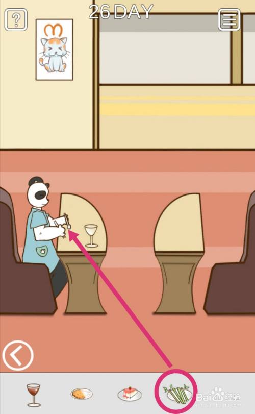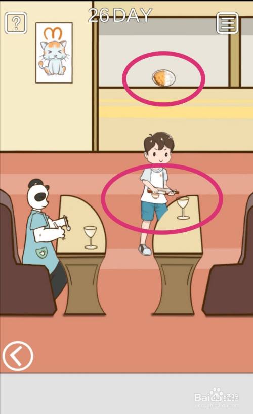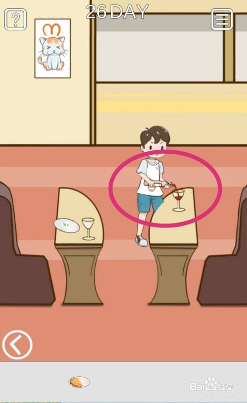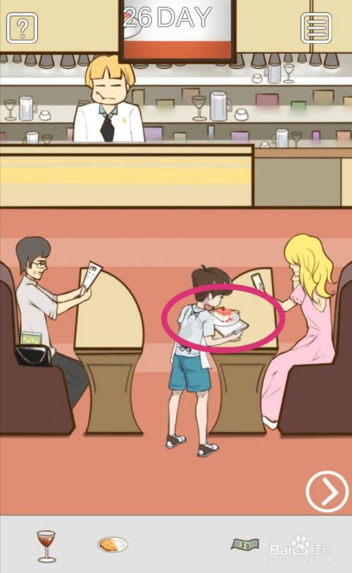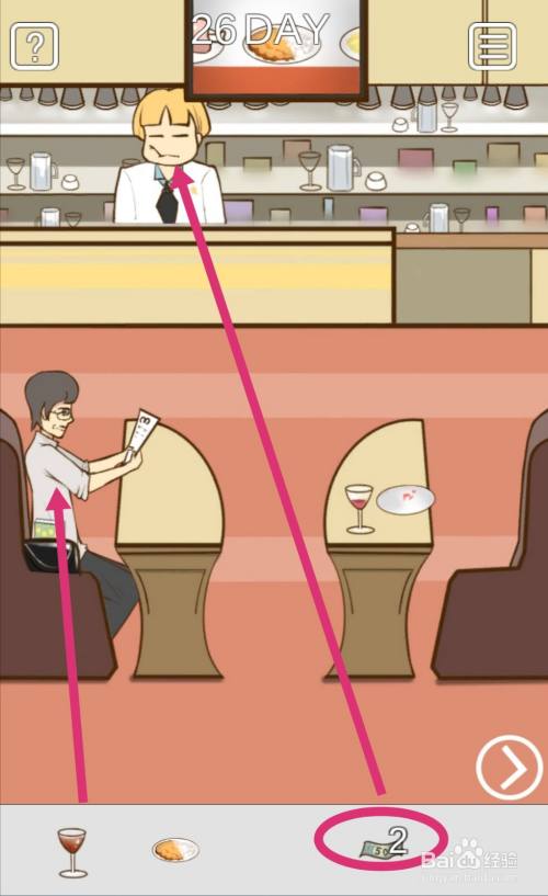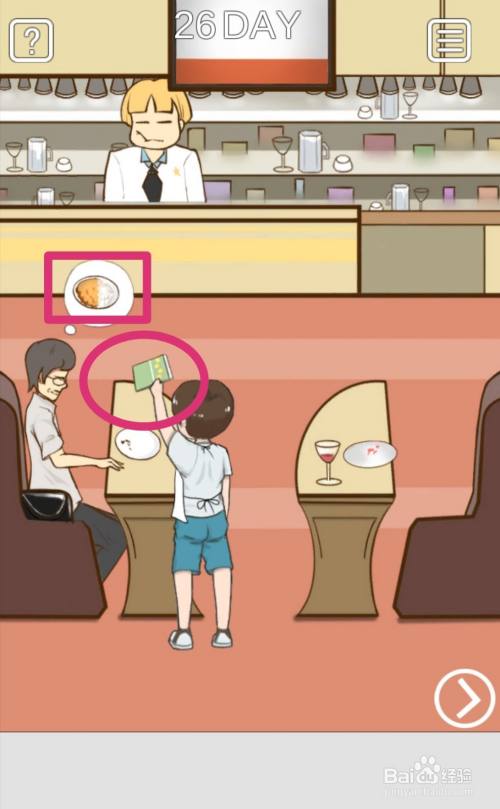 先把第二杯【红酒】给男士,再把【盖饭】给男士,就可以拿到功课本过关了。
