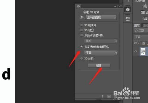 然后选择窗口-3D,勾选从深度映射建立网格,点击建立,如图。