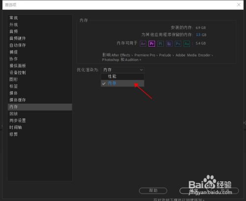 当设备内存≥16G时,可以将优化衬着设置为内存。
