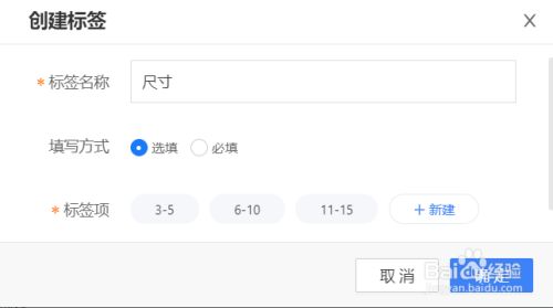 建立标签,注重标签项可以设置分歧的尺寸大小区间。