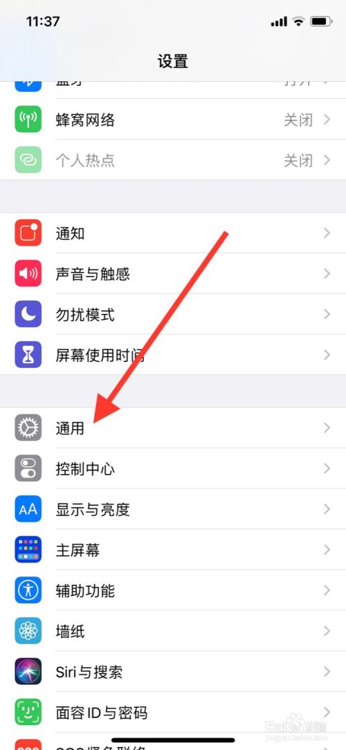 下滑显示页面点击通用进入。