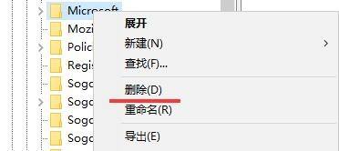 4、可在此中逐个查看把卸载了的软件注册信息删除即可。一般为软件的拼音名称。