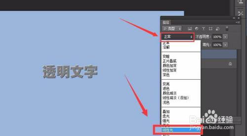 最后在图层的夹杂模式中,选择线性光结果即可完当作透明文字的设置