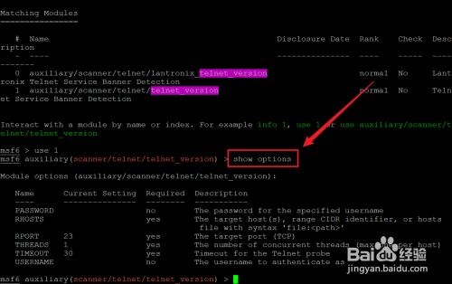 在MSF节制台中利用search号令来搜刮telnet_version模块