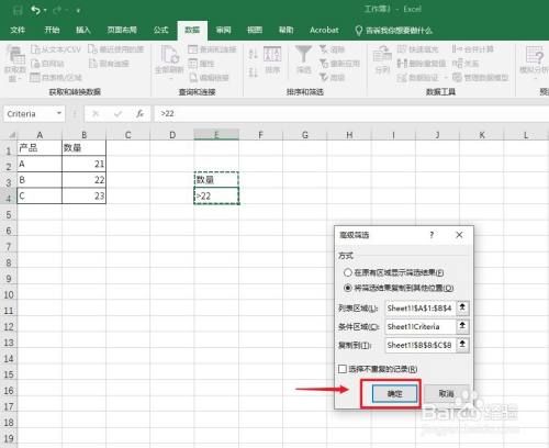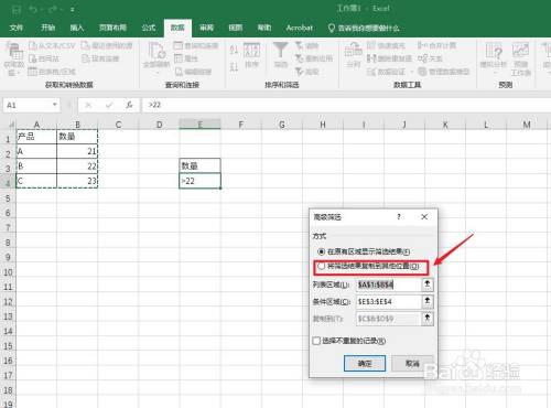 弹出窗口框,点击【将筛选成果复制到其他位置】选项。