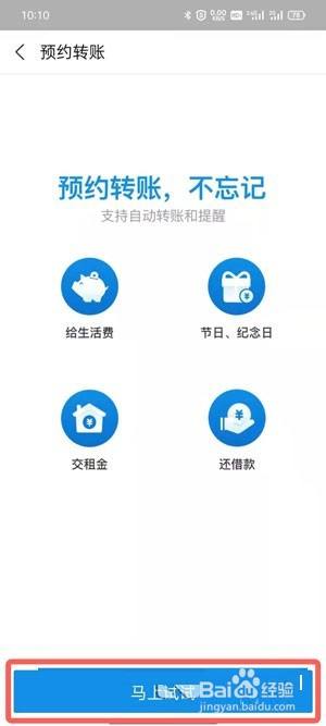 3、点击下方的【顿时尝尝】,利用预约转账办事发布按时转账;