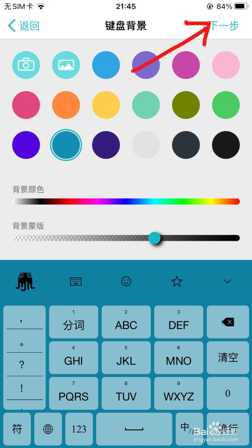 选择【按键颜色】和【按键透明度】,然后点击右上角的【下一步】。