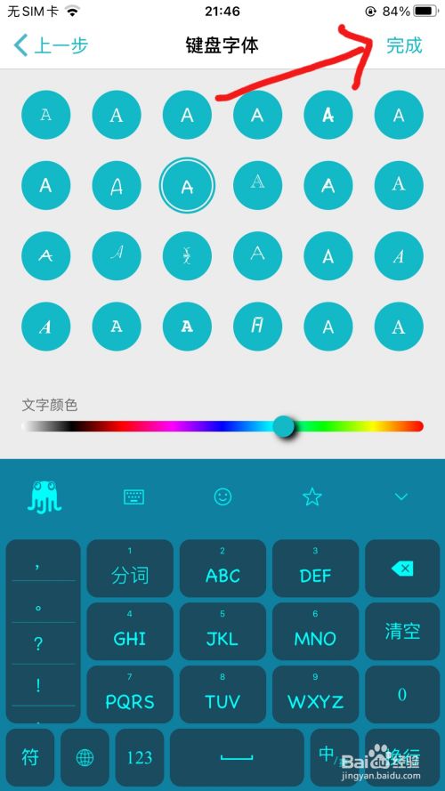 选择键盘的【字体】和【颜色】,然后点击右上角的【完当作】,键盘就建造完当作了。