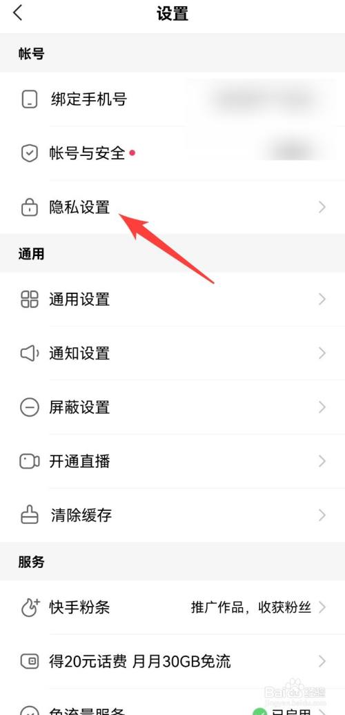 2、找到设置,点击隐私设置。