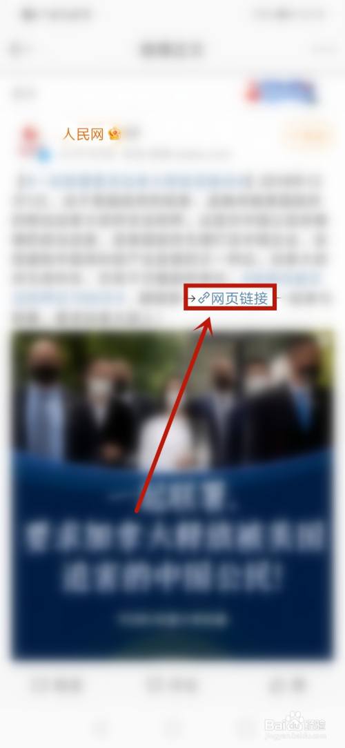 搜刮之后点击【人民网】发布的动静进入查看,点击【网页链接】进入。