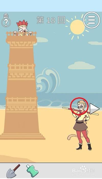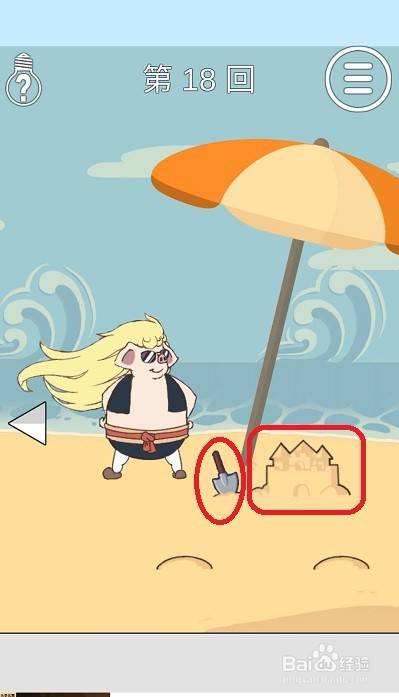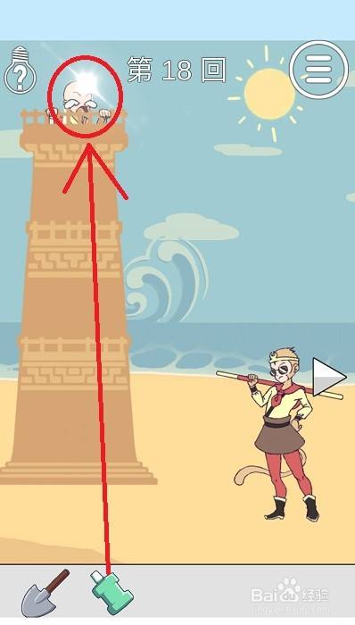 首先切换到右侧场景,点击获取【铲子】,再用铲子去挖旁边的土城堡。