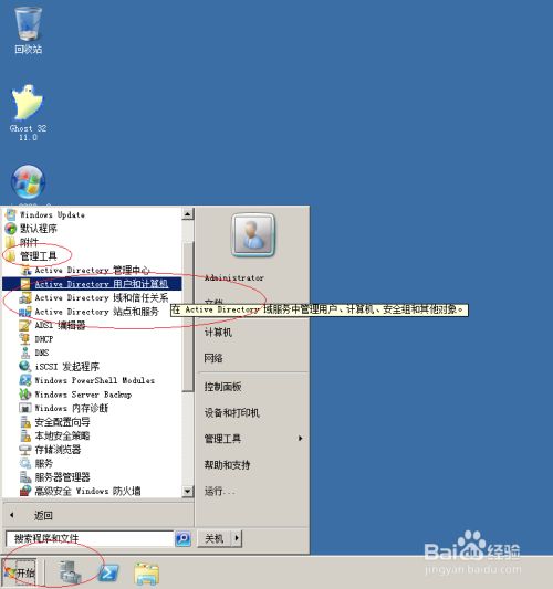 选择"办理东西→Active Directory用户和计较机"项