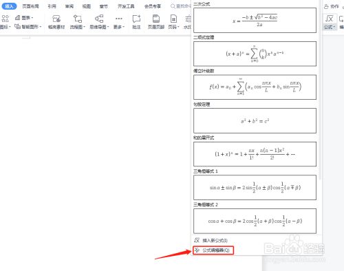 鄙人拉菜单中选择【公式编纂器】。