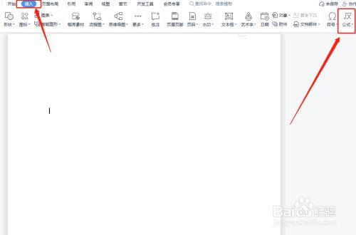 首先在电脑上新建一个【WORD】文档,然后点击【插入】菜单下面的【公式】。