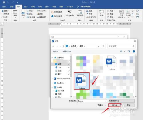 选择Word文件,点击插入。