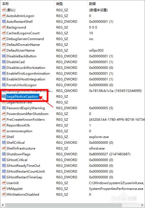 在右侧的文件列表,双击【LegalNoticeCaption】。把需要显示的内容输入弹出窗口的【数值数据】输入框,点击【确定】。