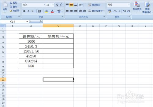 - 将以“元”为单元的数据除以1000即可获得单元为“千元”的数值。
