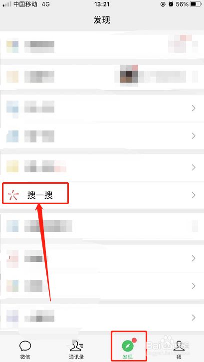 打开手机微信【发现】界面,点击【搜一搜】。