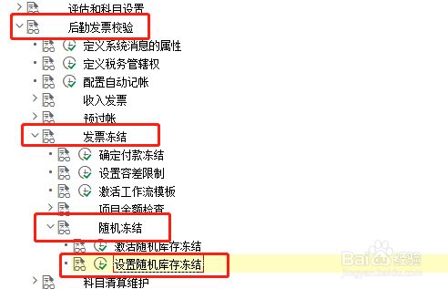 点击'物料办理',睁开子项,选择'后勤发票校验' —>'发票冻结' —>'随机冻结' —>'设置随机库存冻结',点击执行