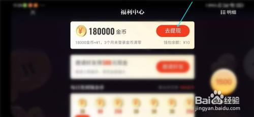 点击【金币】右侧的【去提现】,进入提现界面。