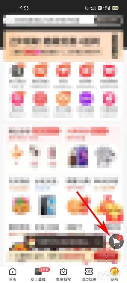 进入“骑士商城”界面,点击“购物车”按钮。