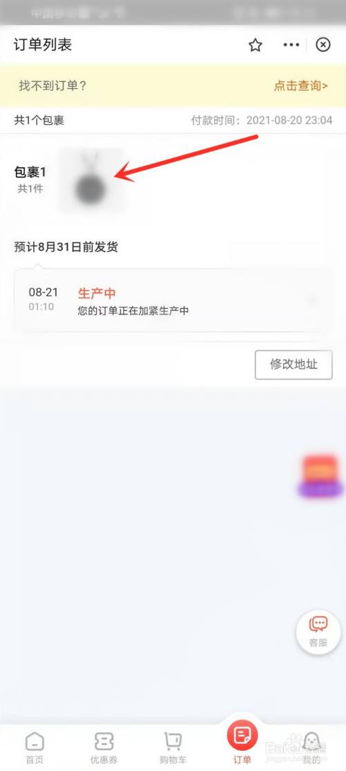 选摘要查看的订单,点击进入订单详情页。