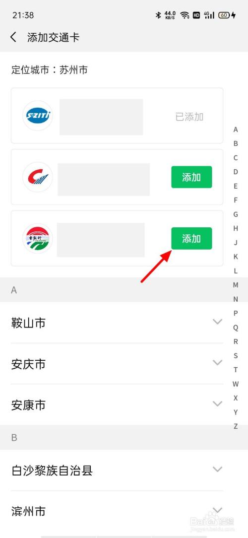 在添加页面,找到交通卡,单击添加。