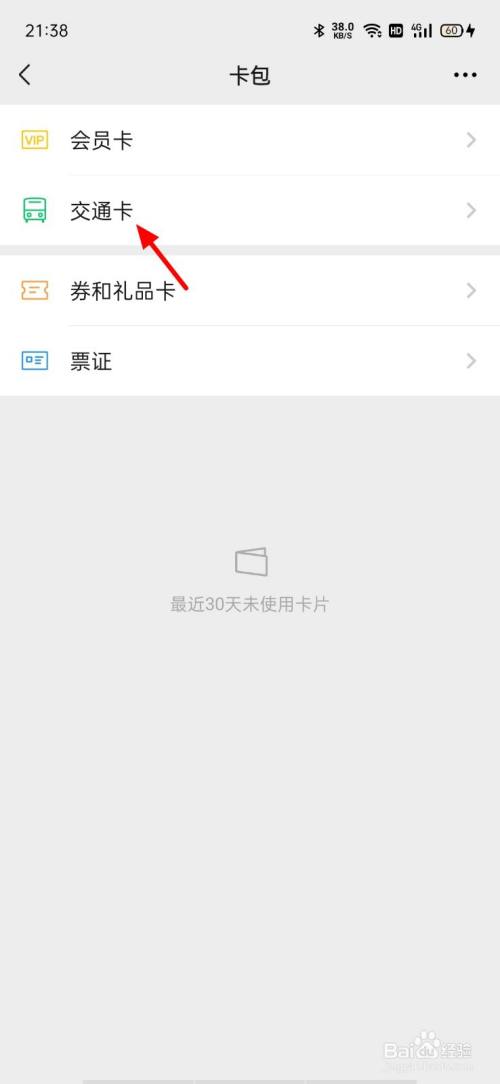 在卡包页面,以交通卡为例,点击交通卡。
