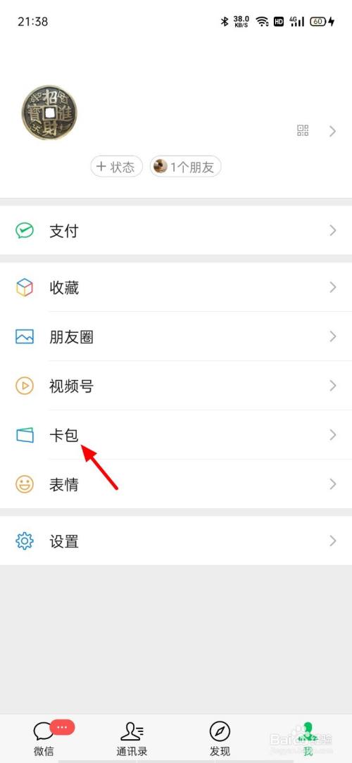 在我页面,点击卡包。