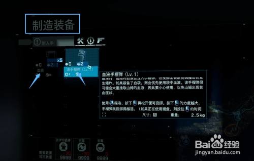 打开菜单里的制造装备栏,制造血液手榴。