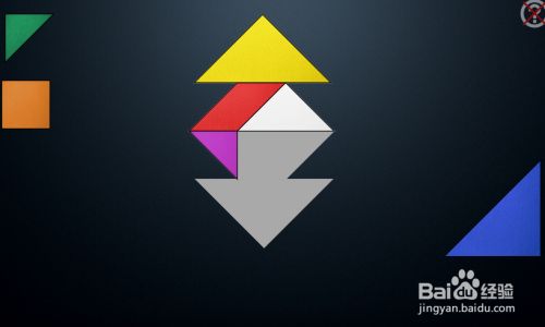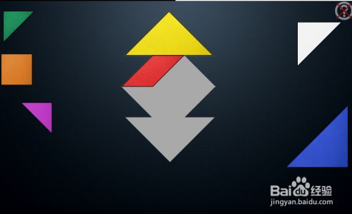 接着点击平行四边形,使之扭转至如图角度,放在黄色三角形下面。