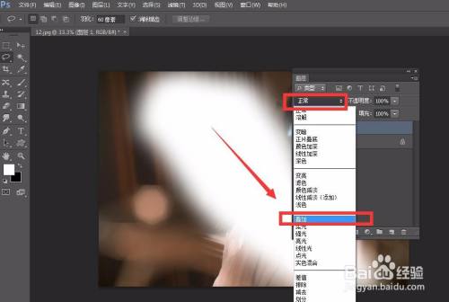 下面,我们回到图层面板,选择设置图层夹杂模式为【叠加】。