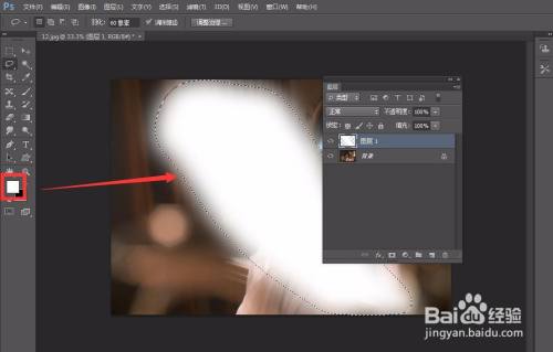 选择左侧东西栏的套索东西,设定成仙值为30~70,按照原图片的光照走标的目的,拔取一部门区域,如下图所示。