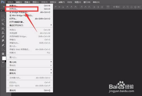 首先,我们打开photoshop,点击左上角的【文件】——【打开】,打开需要处置的图片。